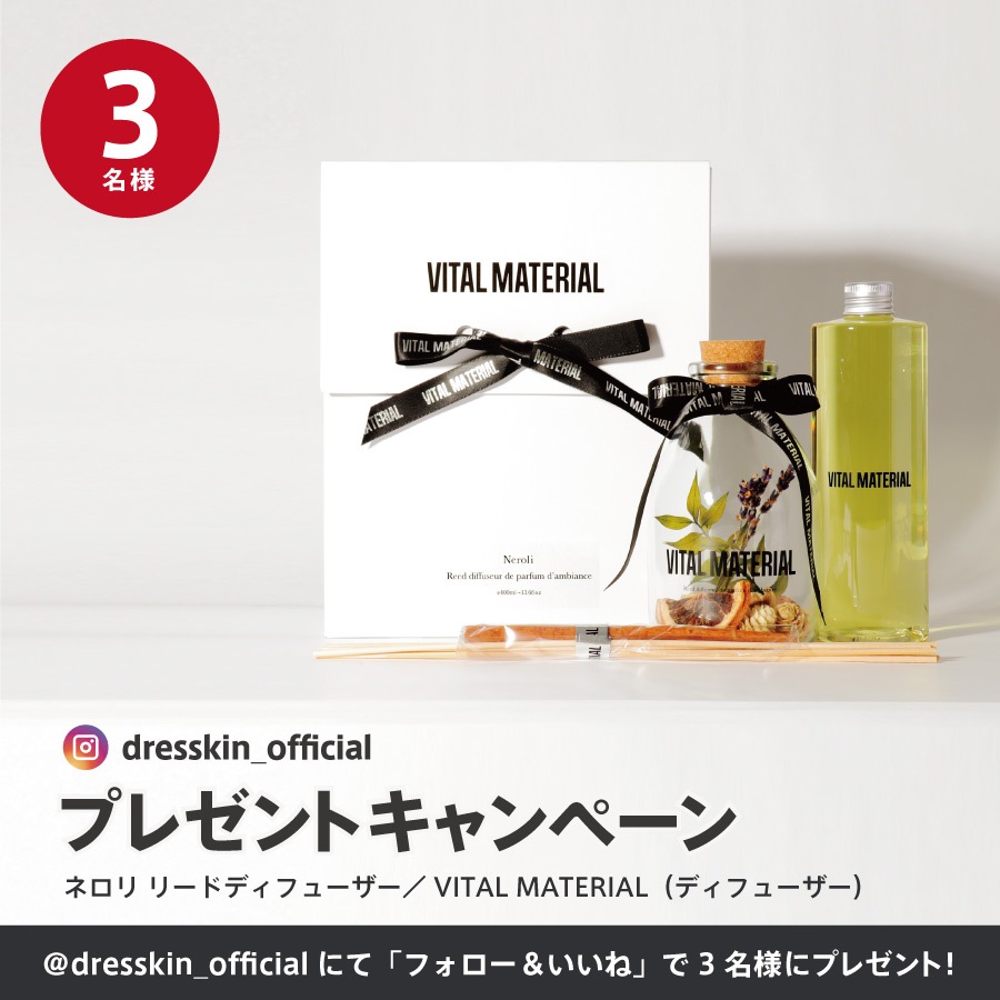 インスタグラムの公式アカウント「dresskin_official」のフォロワー様限定のプレゼントキャンペーンを実施中!