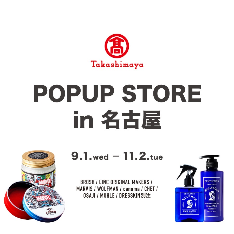 9月1日〜11月2日までの約2か月間、名古屋タカシマヤ店 7階メンズコスメティック売場にて、DRESSKINポップアップストアを展開いたします。