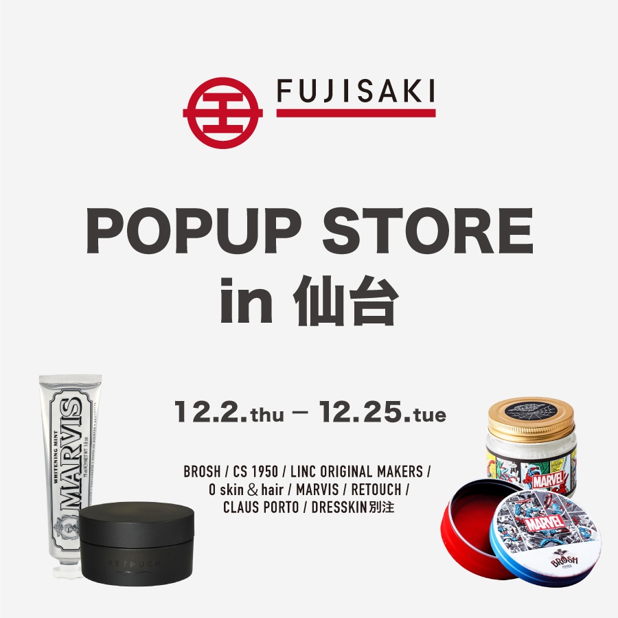 12/2〜12/25までの約1か月間、藤崎本店(仙台)にて、DRESSKINポップアップストアを展開いたします。