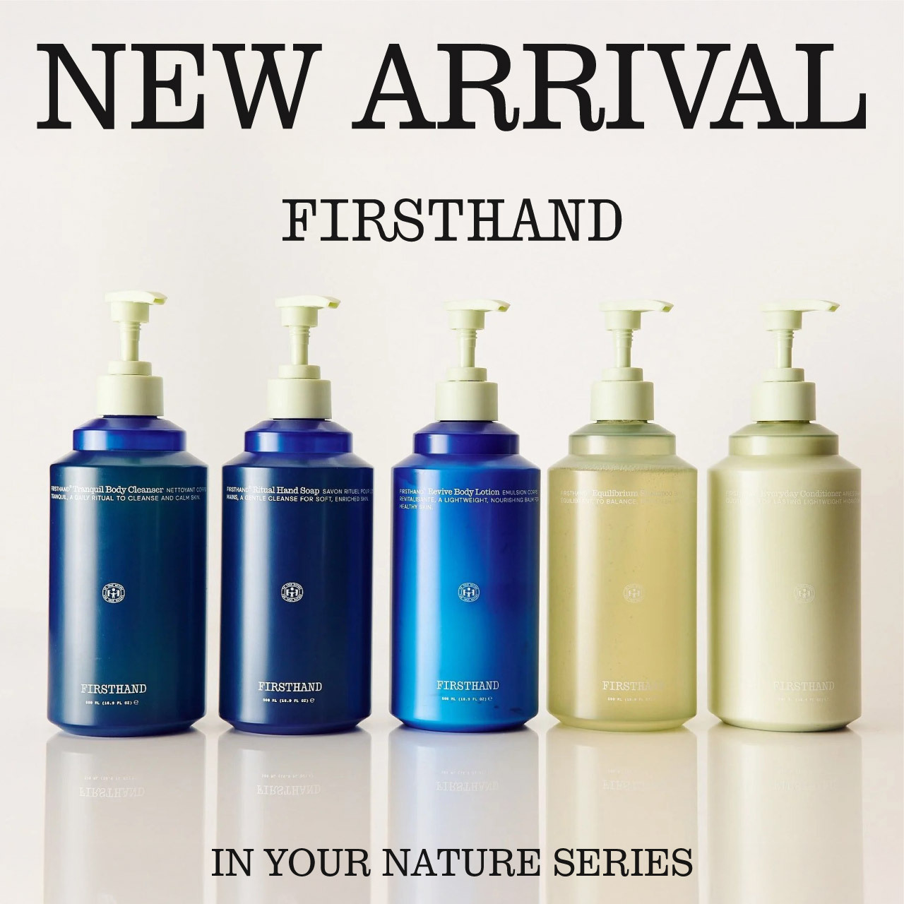 DRESSKINで「FIRSTHAND(ファーストハンド)」の新商品を取扱開始。 自然の恵みと人の手の温もり、その調和を大切にするケアブランドです。米国マサチューセッツ州の自社ラボで、処方・製造のすべてを自らの手で行い、確かな品質と誠実なものづくりを追求しています。